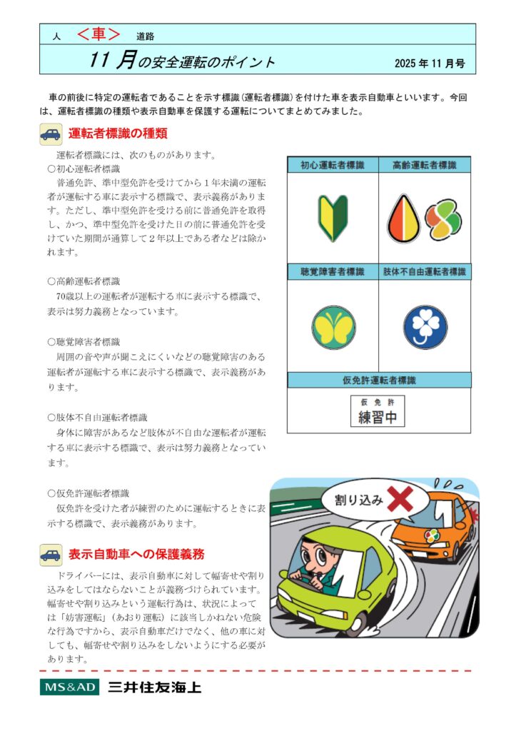 車の前後に特定の運転者であることを示す標識(運転者標識)を付けた車を表示自動車といいます。今回は、運転者標識の種類や表示自動車を保護する運転についてまとめてみました。