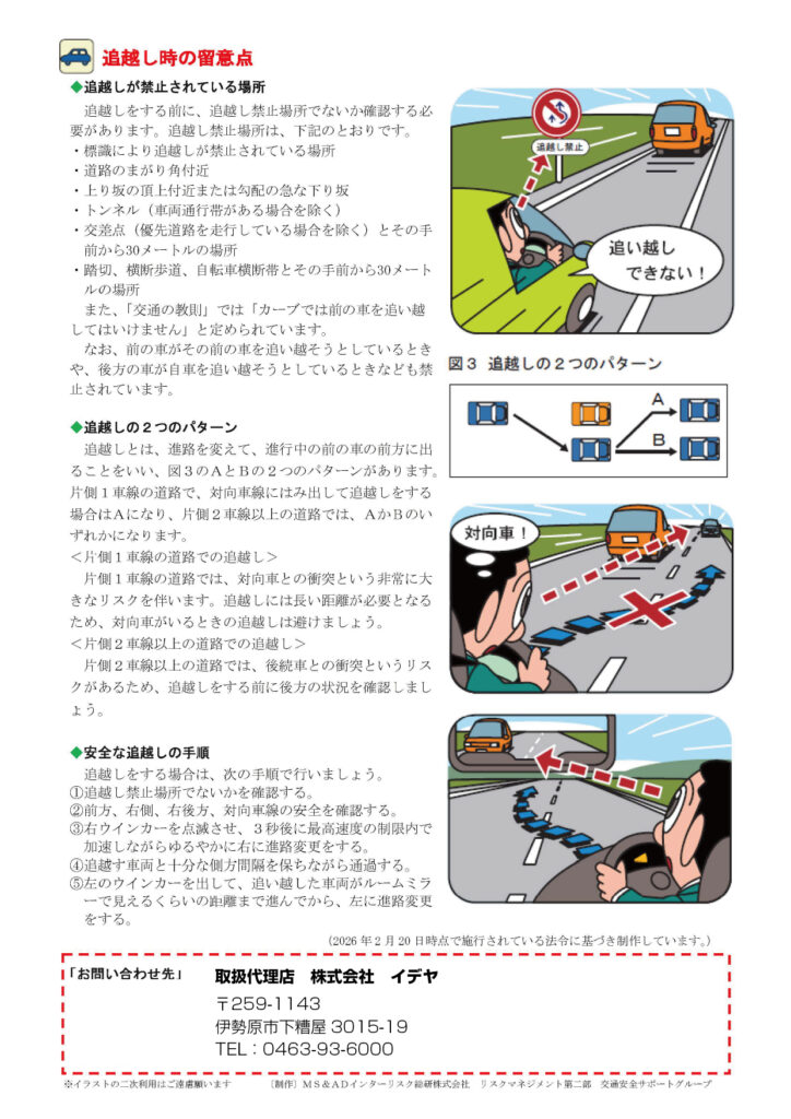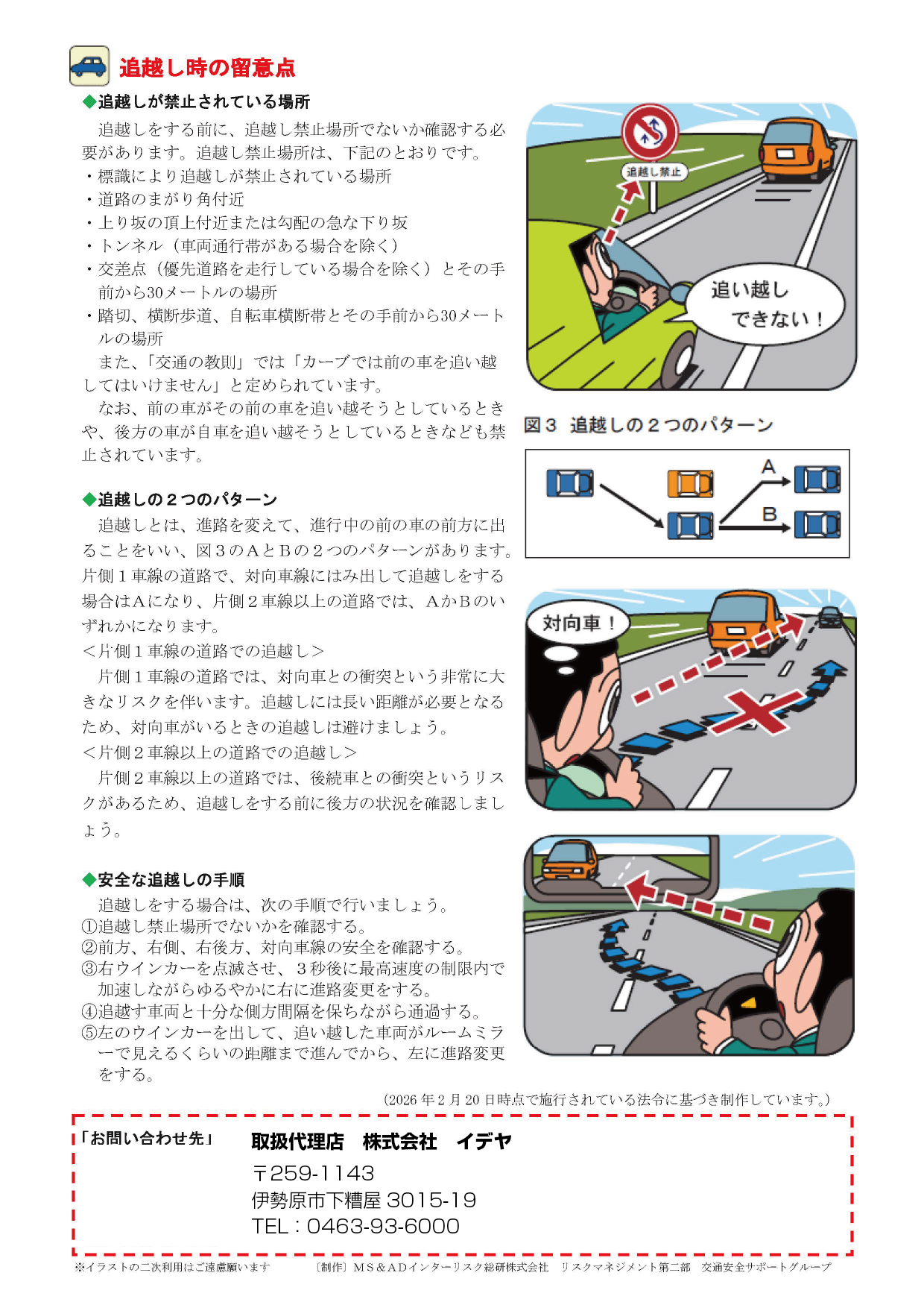さまざまな運転行動のなかで、進路変更や転回、追越しは、事故につながる危険性が高く、できれば避けることが望ましいですが、やむを得ない事情により、これらの運転行動をとらなければならない場合があります。そこで今回は、進路変更時・転回時・追越し時の留意点についてまとめました。