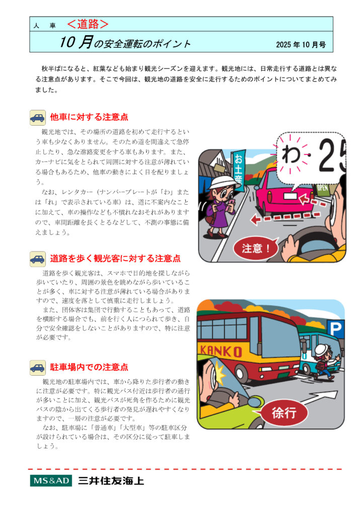 秋半ばになると、紅葉なども始まり観光シーズンを迎えます。観光地には、日常走行する道路とは異 ...