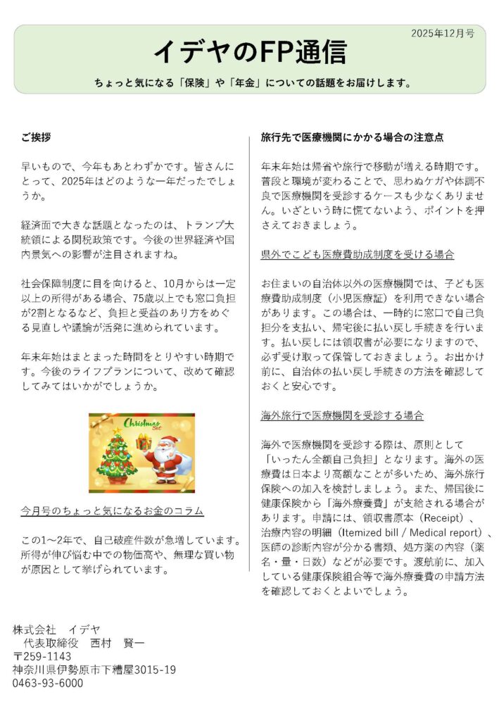 2025年12月1日ガン保険,ファイナンシャルプラン,伊勢原市,保険,個人年金,傷害保険,医療保険,学生こども保険,損害保険,旅行保険,株式会社イデヤ,死亡保険,火災保険,生命保険,自動車保険